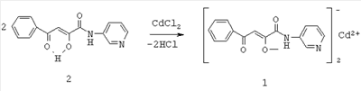 Изобретение относится к области органической химии, к новым биологически активным веществам класса комплексных соединений гетериламидов 4-арил-2,4-диоксобутановых кислот, а именно к бис{3-фенил-1-[N-(3-пиридил)карбоксамидо]-1,3-пропандионато}кадмию формулы (1):