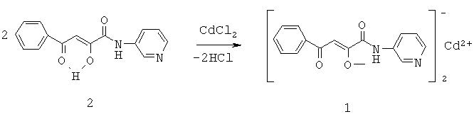 Бис{3-фенил-1-[N-(3-пиридил)карбоксамидо]-1,3-пропандионато}кадмий формулы: