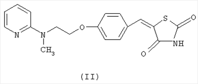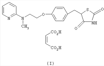 Малеат росиглитазона, малеат 5-[4-[2-(N-метил-N-(2-пиридил)амино)этокси]бензил]тиазолидин-2,4-диона, имеет следующую общую структурную формулу (I):