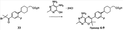 Термин “фармацевтически приемлемые соли” означает соли активных соединений, которые получают с относительно нетоксичными кислотами или основаниями в зависимости от конкретных заместителей, находящихся на соединениях, описанных здесь. Когда соединения по данному изобретению содержат относительно кислотные группы, аддитивные соли с основанием могут быть получены контактированием таких соединений в форме свободной кислоты с достаточным количеством желательного основания, либо неразбавленного, либо в подходящем инертном растворителе. Примеры фармацевтически приемлемых аддитивных солей с основанием включают соли натрия, калия, кальция, аммония, органической аминогруппы или магния или подобную соль. Когда соединения по данному изобретению содержат группы относительно основного характера, аддитивные соли с кислотой могут быть получены контактированием таких соединений в форме свободного основания с достаточным количеством желательной кислоты, либо неразбавленной, либо в подходящем инертном растворителе. Примеры фармацевтически приемлемых аддитивных солей с кислотой включают те, которые получены из неорганических кислот, таких как хлороводородная, бромоводородная, азотная, угольная, моногидрокарбоновая, фосфорная, моногидрофосфорная, дигидрофосфорная, серная, моногидросерная, йодоводородная или фосфористые кислоты и тому подобное, а также соли, полученные из относительно нетоксичных органических кислот, таких как уксусная, пропионовая, изомасляная, малеиновая, малоновая, бензойная, янтарная, субериновая, фумаровая, миндальная, фталевая, бензолсульфоновая, п-толуолсульфоновая, лимонная, винно-каменная, метансульфоновая и тому подобное. Также включены соли аминокислот, такие как аргинат и тому подобное, и соли органических кислот подобных глюкуроновой или галактуроновой кислотам и тому подобное (см., например, Berge, S.M., et al., “Pharmaceutical Salts”, Journal of Pharmaceutical Science, 1977, 66, 1-19). Некоторые конкретные соединения по данному изобретению содержат группы и основного характера, и кислотные, что позволяет превращать соединения в аддитивные соли либо с основанием, либо с кислотой.