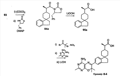 где R’ и R” независимо выбраны из водорода и (C1-C8)алкила, R выбран из водорода, (C1-С3)алкила и незамещенного арила, и когда арильной группой является 1,2,3,4-тетрагидронафталин или индан, он необязательно замещен (С3-С7)спироциклоалкильной группой, причем (С3-С7)спироциклоалкильная группа необязательно замещена -CO2R’ группой, и указанный заместитель может быть присоединен к (С3-С7)спироциклоалкильной группе посредством спейсера, выбранного из С1-С4алкилена, где R’ выбран из водорода, (С1-С3)алкила;