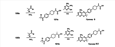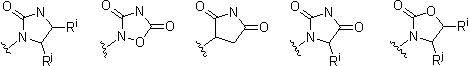 каждый Rh означает заместитель, независимо выбранный из оксо, галогена, Rh1, -CH(Rf)-CO2Re, -С(Rf)2-CO2Re и -(СН2)t-CO2R6,