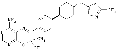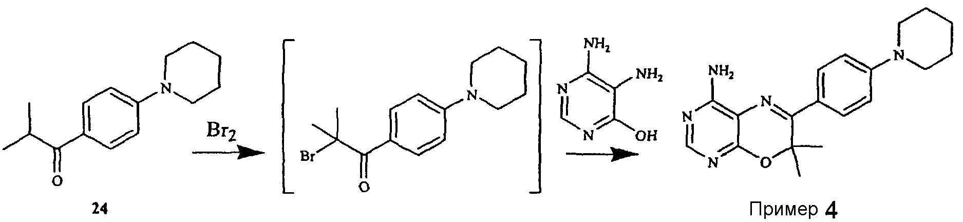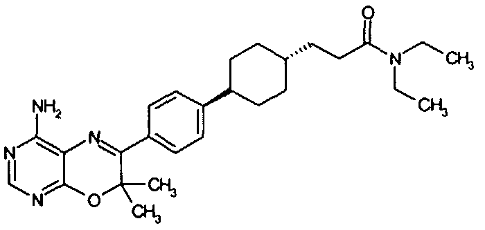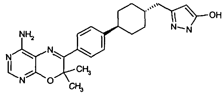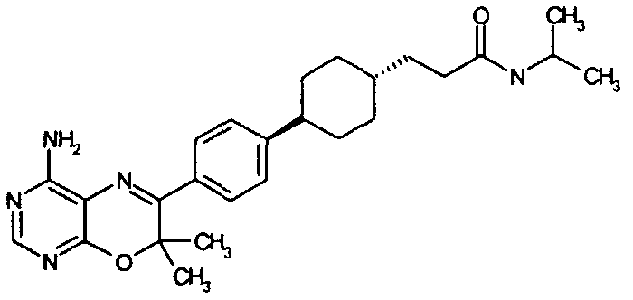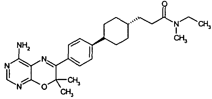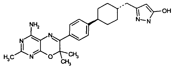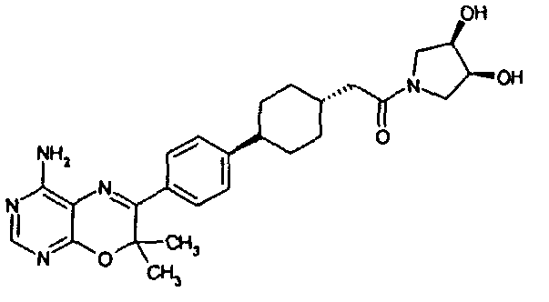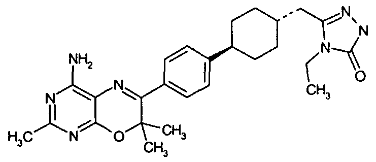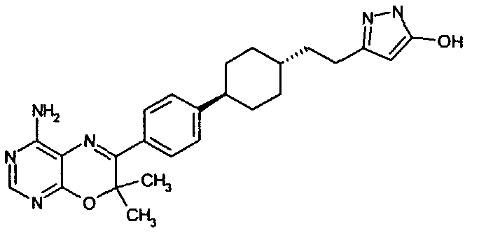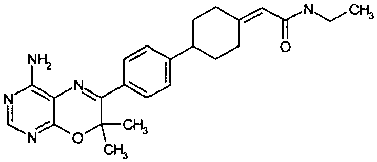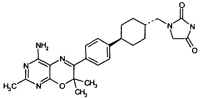 Указанные количества ингредиентов(а), (b), (с) и 30 г (d) смешивают до однородной массы с водой, далее сушат в вакууме и гранулируют. Полученные гранулы смешивают с 14 г (d) и 1 г (е) и прессуют в таблетки в таблетировочной машине, с получением 1000 таблеток, каждая из которых содержит 10 мг активного ингредиента (а).