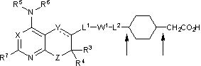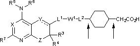 12. Соединение по п.11, где Rh выбраны из оксо, галогена, Rh1, ORh1, N(Rh1)2, (C1-C8)галогеналкила, (C1-C8)галогеналкокси, арил(С1-С4)алкила, (C1-C8)алкилен-CO2Re, C(O)Re, CO2Re, =СН-CONReRf, =CH-CO2Re, -CH2-CO2Re, -СН(Rf)-CO2Re, -С(Rf)2-CO2Re, -CH2CH2CO2Re, -С(O)NReRf, -СН2С(O)NReRf, -СН2СН2CONReRf, -NHSO2Re, -CH2NHSO2Re, -CH2CH2NHSO2Re, -СН2SO2NReRf, -CH2CH2SO2NReRf, -CH2OH-, -CH2NReRf, СН2СН2OH, -CH2-W3, -CH2CH2-W3 и -С(O)CO2Re, где любая алкильная часть Re и Rf необязательно замещена заместителем, выбранным из ОН, СООН, NH2, CONH2, фенила, диалкиламино и COOR6, где Rg означает (C1-C4)алкил;
