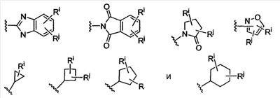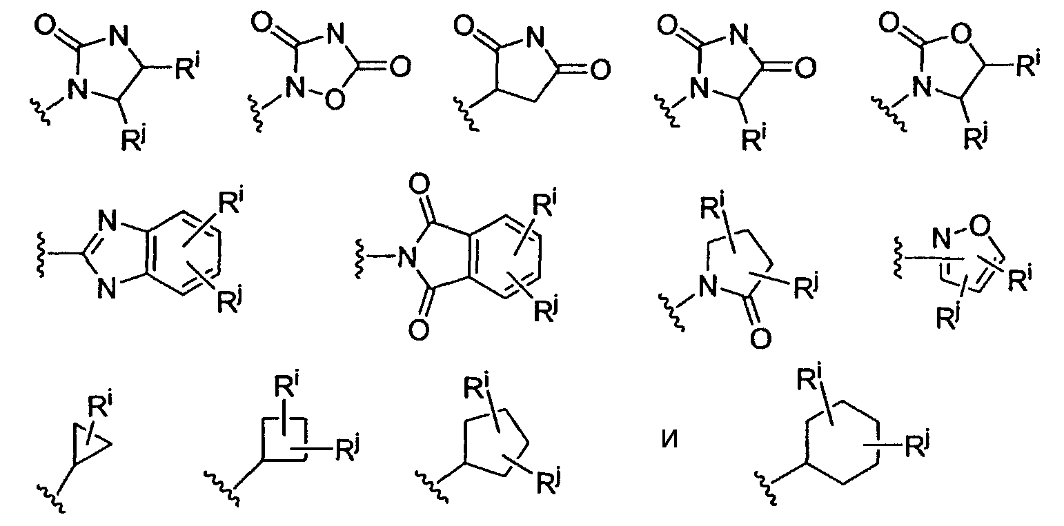 необязательно, когда m означает 1 и L2 означает связь, заместитель на W2 может быть объединен с заместителем на W1 с образованием 5- или 6-членного кольца, конденсированного с W1 и образующего спиросистему или конденсированного с W2, где указанное кольцо является насыщенным или ненасыщенным и имеет 0 или 1 атом О, в качестве членов кольца;