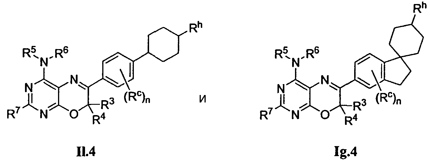 Rc является заместителем, выбранным из Rc1, ORc1, N(Rc1)2, NO2, галогена, (С1-С8)галогеналкила и (С1-С8)галогеналкокси, где каждая группа Rc1, независимо, означает Н, (С1-С8)алкил, и когда Rc является N(Rc1)2 группой, две группы Rc1 могут быть объединены с образованием пяти- или шестичленного кольца, и необязательно, для If и Ig, две группы Rc1 могут быть объединены с образованием 3-, 4-, 5-, 6- или 7-членного кольца, необязательно замещенного спироциклическим кольцом.