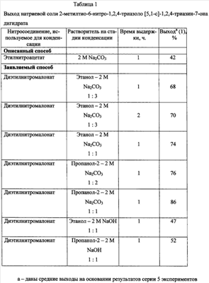 (54) СПОСОБ ПОЛУЧЕНИЯ НАТРИЕВОЙ СОЛИ 2-МЕТИЛТИО-6-НИТРО-1,2,4-ТРИАЗОЛО[5,1-c]-1,2,4-ТРИАЗИН-7-ОНА, ДИГИДРАТА