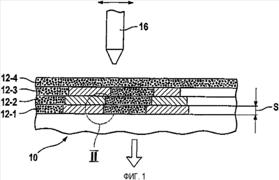 Толщину слоя выбирают – в зависимости от области применения – между 20 и 30 мкм, причем – как видно из фиг.2 – большинство частиц порошка 18 имеют диаметр зерен D около 1/3 толщины слоя S.