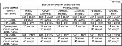 Освещение главного танка управляется следующей системой управления. Все цепи включаются по времени и последовательно управляются. Включение по времени полностью запрограммированное. Первоначальные установки приведены в таблице.