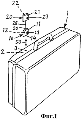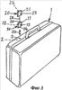 Транспортный контейнер 1, показанный на фигуре 1, представляет собой коммерческое место хранения, который может быть открыт и/или его система сигнализации деактивируется путем использования специального кода. Показанный на чертеже транспортный контейнер 1 представляет собой безопасный контейнер или безопасный чемодан, внешний корпус которого оборудован системой сигнализации так, что любая попытка сделать отверстие в корпусе или согнуть корпус или любая другая неправомерная попытка открыть корпус может быть обнаружена. Контейнер 1 имеет первый электронный модуль 2 с необходимым источником питания. Электронный модуль 2 служит для активации агента разрушения или тому подобного устройства внутри контейнера немедленно после взлома цепи сигнализации, например при попытке проникнуть в контейнер, чтобы незаконно завладеть его содержимым. Активация и деактивация электрической сигнальной системы или системы сигнализации осуществляется воздействием на электронный модуль соответствующей системы с кодом безопасности высокого уровня. Описанный выше транспортный контейнер 1 может быть использован для транспортировки ценных объектов между различными местами назначения, когда после укладки в него ценных объектов типа банкнот, документов, компьютерных дисков и т.д., контейнер 1 закрывается, и система сигнализации активируется вплоть до доставки контейнера назначенному адресату, после чего контейнер открывается, используя код на месте указанного адресата, путем правомерной деактивации системы аварийной сигнализации при помощи ключа. Таким образом, контейнер 1 открывается без разрушения его содержимого указанным средством разрушения. Затем контейнер может быть освобожден, перезагружен и так далее.