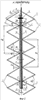 – коаксиальный фидер был проложен в полости одной из трубок двухпроводной линии до ее нижнего или верхнего конца, наружный проводник коаксиального фидера был бы соединен соответственно с нижним или верхним концом этой трубки, центральный проводник коаксиального фидера был бы соединен соответственно с нижним или верхним концом другой трубки двухпроводной линии на расстоянии 0,234 lш 0,266 от точек соединения друг с другом ромбовидных элементов соответственно нижнего или верхнего излучателя решетки, а трубки двухпроводной линии были бы короткозамкнуты между собой со стороны введения коаксиального фидера в полость трубки на расстоянии lш, которое аналогично упомянутому;