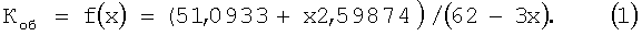 Подобным образом по фиг.5…8: Коб=0,82656+х0,059274, R2 д=(920+44x+92·х2)/62, Хопт=0,49, Коб=0,85561 и д%мин =2,36, а при х=0- д%=4,72 и Кэф=2,07.