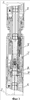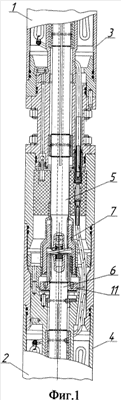 Муфта 7 состоит из корпуса 8 и обоймы 9 цилиндрической формы (фиг.2), в которых выполнены шлицы, имеющие форму, ответную шлицам на валах 5 и 6. Корпус 8 может быть образован двумя цилиндрами с разным внутренним диаметром и иметь внутренний кольцевой уступ 10, причем цилиндр с большим диаметром расположен внизу и охватывает своей внутренней поверхностью обойму 9. Верхняя часть корпуса 8 заходит в зацепление с валом 5 верхней секции 1, а обойма 9 насажена на вал 6 нижней секции 2 и опирается на осевую опору 11. На наружной поверхности обоймы 9 и на внутренней поверхности нижней части корпуса 8 выполнены специальные направляющие канавки, в которых размещены тела качения 12, например шарики, что обеспечивает свободное осевое перемещение обоймы 9 относительно корпуса 8.