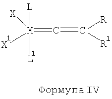 где М означает осмий или рутений, R и R1 независимо друг от друга означают атом водорода, остаток углеводорода, выбираемый из группы, включающей алкенильную группу с числом атомов углерода от двух до двадцати, алкинильную группу с числом атомов углерода от двух до двадцати, алкильную группу с числом атомов углерода от одного до двадцати, арильную группу, карбоксилатную группу с числом атомов углерода от одного до двадцати, алкоксигруппу с числом атомов углерода от одного до двадцати, алкенилоксигруппу с числом атомов углерода от двух до двадцати, алкинилоксигруппу с числом атомов углерода от двух до двадцати, арилоксигруппу, алкоксикарбонильную группу с числом атомов углерода от двух до двадцати, алкитиольную группу с числом атомов углерода от одного до двадцати, алкилсульфонильную группу с числом атомов углерода от одного до двадцати и алкилсульфинильную группу с числом атомов углерода от одного до двадцати, Х и X1 независимо друг от друга означают любой анионный лиганд, L и L1 независимо друг от друга означают любой нейтральный лиганд, например, это фосфины, амины, тиоэфиры, имидазолидинилидены или имидазолидины или же любой нейтральный карбин, в отдельных случаях L и L1 могут быть связаны друг с другом с образованием бидентатного нейтрального лиганда;