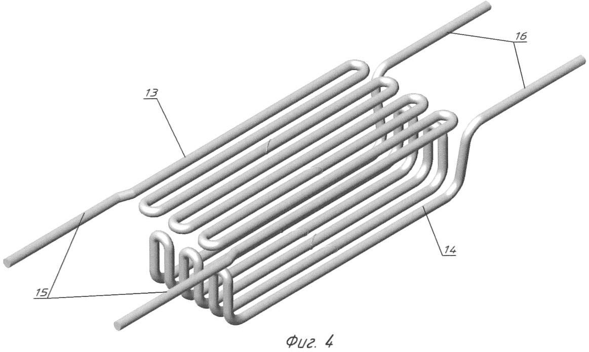 2. Установка по п.1, отличающаяся тем, что верхняя секция нагревательной системы имеет петлеобразную конфигурацию и содержит четное число прутков, образующих отдельные петли, нижняя коробчатая секция также образована петлеобразно изогнутым прутком и имеет четное количество прутков, образующих отдельные петли, причем количество отдельных прутков верхней секции равно или больше количества отдельных прутков нижней секции.