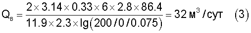 В данном примере Qв=(30·95-2·20)/100=28.1 м3/сут