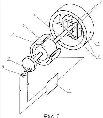 Динамически настраиваемый гироскоп содержит маховик 1 (фиг.1), укрепленный с помощью взаимно перпендикулярных перемычек 2 и 3 на валу 4, который вращается с помощью привода, состоящего из статора 5, ротора 6, магнита 7 датчика положения ротора. На корпусе гироскопа закреплена катушка 8 датчика положения ротора, сигнал с которой поступает в электронный блок 9, управляющий вращением привода.