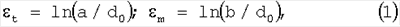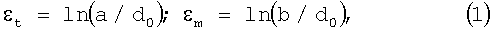 где а, b – размеры ячеек деформированной делительной сетки соответственно в окружном и меридиональном направлениях.