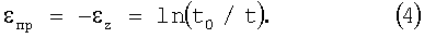 где z=ln(t/t0) – деформация в направлении нормали к поверхности образца.