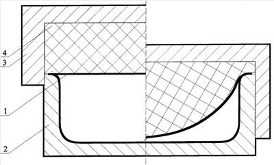В процессе вытяжки эластичным пуансоном в жесткую круглую матрицу плоская заготовка преобразуется в сферическую оболочку. Расчет окружной t и меридиональной m деформаций производили, используя соотношения