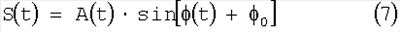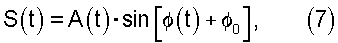 где A(t) обозначает огибающую амплитуду, 0 – начальная фаза, (t) представляет мгновенную фазу.