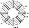 Фиг.9 показывает сечение контактной проставки, показанной на Фиг.8, и иллюстрирует радиальное расположение проводниковых элементов 52f, в котором они будут распложены внутри проводникового канала 55 контактной проставки 53.
