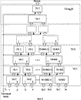 1. Цифровой синтезатор частот, содержащий опорный генератор, N цифровых интеграторов, N преобразователей кода, сумматор кодов с N информационными входами, последовательно соединенные цифроаналоговый преобразователь и фильтр нижних частот, выход которого является выходом устройства, тактовый вход цифроаналогового преобразователя подключен к выходу опорного генератора и соединен с тактовым входом сумматора кодов с N информационными входами, выход которого соединен с информационным входом цифроаналогового преобразователя, а соответствующие информационные входы соединены с соответствующими выходами N преобразователей кода, выход опорного генератора также подключен к тактовым входам N цифровых интеграторов, информационные входы которых являются кодовыми шинами задания синтезируемых частот, при этом сумматор кодов с N информационными входами выполнен в виде log2N суммирующих блоков, каждый из которых выполнен на N/2r сумматорах и N/2r регистрах памяти, где r – номер суммирующего блока, при этом первый и второй входы сумматоров первого суммирующего блока являются соответствующими из N информационных входов сумматора кодов с N информационными входами, выход каждого из сумматоров в каждом из суммирующих блоков подключен к входу соответствующего регистра памяти, выход каждого из регистров памяти с нечетным номером r-го суммирующего блока соединен с первым входом соответствующего сумматора (r+1)-го суммирующего блока, выход каждого из регистров памяти с четным номером r-го суммирующего блока соединен со вторым входом соответствующего сумматора (r+1)-го суммирующего блока, тактовые входы всех регистров памяти всех суммирующих блоков объединены и являются тактовым входом сумматора кодов с N информационными входами, выходом которого является выход регистра памяти (log2N)-го суммирующего блока, а каждый из N цифровых интеграторов содержит последовательно соединенные умножитель кода, первый сумматор, первый регистр памяти, второй регистр памяти и мультиплексор, а также блок синхронизации и Р каналов, каждый из которых выполнен в виде последовательно соединенных корректора кода, сумматора и регистра памяти, выход которого подключен к соответствующему информационному входу мультиплексора, при этом входы умножителя кода и корректоров кода Р каналов объединены и являются информационным входом цифрового интегратора, другой вход первого сумматора объединен с другими входами сумматоров Р каналов и подключен к выходу первого регистра памяти, тактовые входы первого и второго регистров памяти и регистров памяти Р каналов объединены и подключены к первому выходу блока синхронизации, второй и третий выходы которого соединены соответственно с первым и вторым управляющими входами мультиплексора, выход которого является выходом цифрового интегратора, а тактовый вход блока синхронизации является входом тактирующего сигнала цифрового интегратора, отличающийся тем, что дополнительно содержит N блоков установки начальных фаз моногармоник синтезируемых колебаний, первые информационные входы которых являются кодовыми сигналами задания начальной фазы моногармоник из диапазона синтезируемых частот, а вторые информационные входы, тактовый вход и выход которого подключены соответственно к выходам соответствующих N цифровых интегра