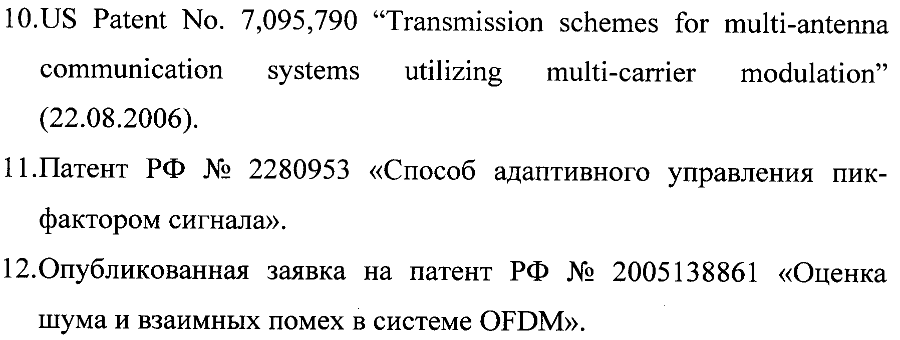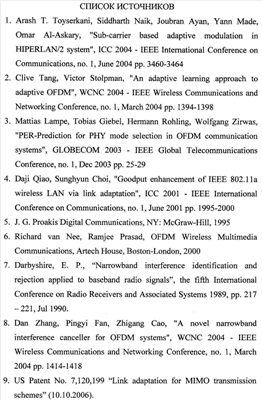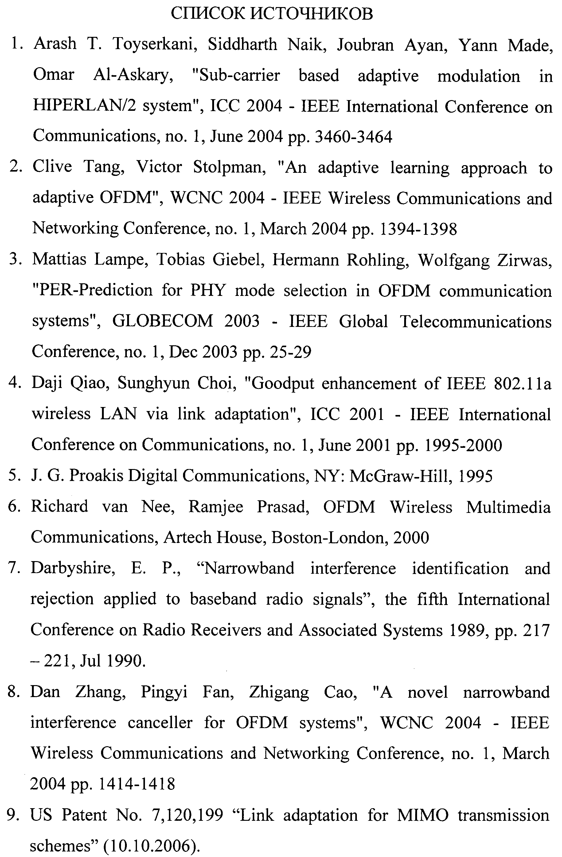MATTIAS LAMPE, TOBIAS GIEBEL, HERMANN ROHLING, WOLFGANG ZIRWAS, PER-Prediction for PHY mode selection in OFDM communication systems, GLOBECOM 2003 – IEEE Global Telecommunications Conference, no.1, Dec 2003, pp.25-29. RU 2280953 С2, 20.04.2005. RU 2005138861 A, 10.06.2006. RU 2292116 C2, 20.01.2007. US 7120199 B2, 10.10.2006. US 7095790 B2,