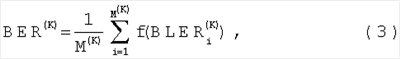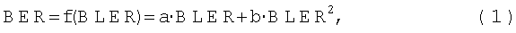 Точная функциональная зависимость между вероятностью блоковой ошибки BLER и вероятностью битовой ошибки BER в известной литературе отсутствует. Такая функциональная зависимость может быть найдена с помощью компьютерного моделирования приема блоков данных в различных условиях с последующей аппроксимацией полученных результатов, например, в виде полинома. Так, при использовании блоков с числом исходных информационных бит L=120 и семью проверочными битами установлена следующая приближенная функциональная зависимость между BER и BLER