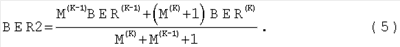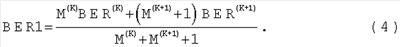 – правило назначения скорости передачи для используемых групп поднесущих очередного кадра и необходимость повтора данных текущего кадра, передаваемого на скорости VK, устанавливают на основе анализа частоты блоковой ошибки (BLER) текущего и предыдущих кадров, при этом используют функциональную зависимость между вероятностью блоковой ошибки BLER и вероятностью битовой ошибки BER и при приеме каждого j-го кадра:
