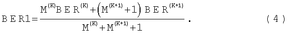 – если скорость передачи VK текущего кадра не максимальна, для очередного кадра формируют повышающую прогнозную величину BER1, соответствующую его передаче на скорости VK+1, вычисляя объединенную среднюю вероятность битовой ошибки для скоростей VK и VK+1;