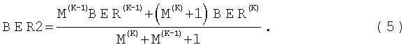 – если скорость передачи VK текущего кадра не минимальна, для очередного кадра формируют понижающую прогнозную величину BER2, соответствующую его передаче на скорости VK-1, вычисляя объединенную среднюю вероятность битовой ошибки для скоростей VК и VK-1;