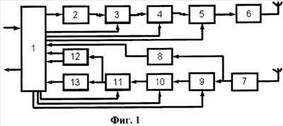 Заявляемый способ реализуют в устройстве приемопередачи, структурная схема которого представлена на Фиг.1.
