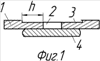 фиг.1 – ремонтируемая деталь с разделанным дефектным местом, зачищенным от жаростойкого покрытия участком поверхности h и прихваченной к детали сеткой;