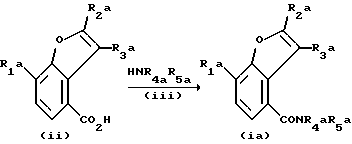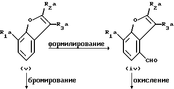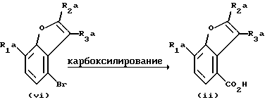 Способ получения соединения формулы (i), где Z представляет CO, содержит реакцию соответствующей карбоновой кислоты формулы (ii) с подходящим амином формулы (iii):![]() где R1a представляет R1 по определению к формуле (i) или группу, превращаемую в R1, a R2a-R5a аналогично представляют R2-R5 или группы, превращаемые в R2-R5 соответственно; а в дальнейшем, если потребуется, превращение любой группы R1a в R1 и/или R2a в R2, и/или P3a в R3, и/или R4a в R4, и/или R5a в R5; а в дальнейшем, если потребуется, превращение любой группы R1a в R1 и/или R2a в R2, и/или R3a в R3, и/или R4a в R4, и/или R5a в R5. Реакцию карбоновой кислоты формулы (ii) с амином формулы (iii) можно осуществлять в любых известных практическим специалистам подходящих условиях. Реакцию предпочтительно осуществляют в присутствии подходящего основания, например амина, такого как триэтиламин, предпочтительно в подходящем растворителе, таком как дихлорметан. В некоторых случаях будет требоваться более сильное основание, такое как гидрид натрия, и полярный растворитель, такой как диметилформамид. Предпочтительно карбоновую кислоту превращают в хлорангидрид, смешанный ангидрид или другой активированный промежуточный продукт до реакции с амином формулы (iii). Карбоновые кислоты формулы (ii) и амины формулы (ii) являются либо коммерчески доступными, описанными ранее соединениями, либо их получают с помощью стандартных способов, известных практическим специалистам. Карбоновую кислоту формулы (ii), например, удобно получать из соответствующего бензофурана формулы (v) с использованием известных практическим специалистам стандартных способов. Бензофуран формулы (v), например, можно применять для получения альдегида формулы (iv), который затем можно окислить для получения соответствующей кислоты формулы (ii). В качестве альтернативного варианта, можно бромировать бензофуран формулы (v), получая бромид формулы (vi), который затем может быть превращен в карбоновую кислоту формулы (ii), например через карбоксилирование с использованием металлоорганического катализа, такого как катализируемая палладием реакция. ![]() ![]() Соединение формулы (ia) может быть также получено путем реакции карбоновой кислоты формулы (ii) с амином (iii) с образованием соединения формулы (ia), в которой R4a представляет H, с последующей реакцией с реагентом R4aY (vii), в котором Y представляет подходящую уходящую группу, такую как галоген. Первая реакция может быть осуществлена, как описано выше. Карбоновую кислоту предпочтительно превращают в хлорангидрид, смешанный ангидрид или другой активированный промежуточный продукт до реакции с амином (iii). Реакцию с реагентом (vii) можно осуществить в любых известных практическим специалистам подходящих условиях. Она может быть проведена в присутствии подходящего основания, например гидрида натрия, предпочтительно в подходящем растворителе, таком как диметилформамид. Реагенты (vii) представляют известные соединения или коммерчески доступные, или их получают с помощью известных практическим специалистам стандартных способов. Такие соединения включают алкилирующие агенты, такие как пропилбромид, ацилирующие агенты, такие как бензоилхлорид и сульфонилирующие агенты, такие как метансульфонилхлорид. Соединения формулы (i) могут быть также получены путем взаимопревращения других соединений формулы (i). Например, соединение, в котором R<с