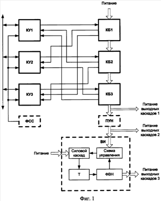 фиг.1 – структурная схема устройства формирования напряжения питания выходных каскадов ответственных сигналов;