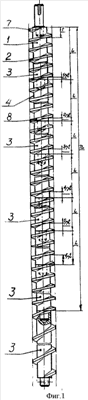 Соединение секций последовательно торцами с обеспечением заданного расстояния между первым витком первой секции и последним витком каждой последующей секции позволяет повысить точность параметров длинномерного шнека за счет исключения накопления погрешности по длине шнека.