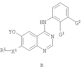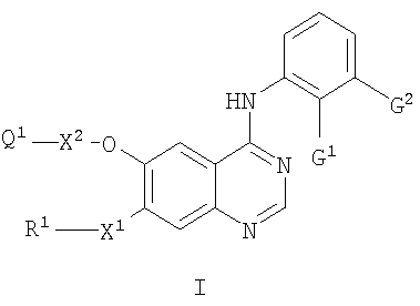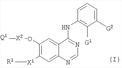 10. Производное хиназолина формулы I по любому из предыдущих пунктов, в котором G1 представляет собой фтор и G2 представляет собой хлор.