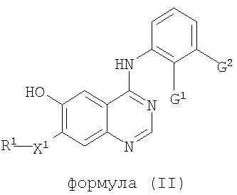 7. Производное хиназолина формулы I по п.1, в котором каждый из R1, G1, G2 и X1 имеет любое из значений, указанных в п.1; и