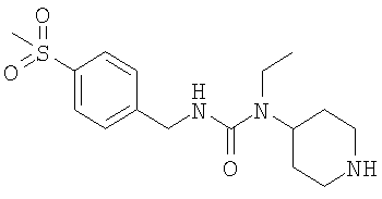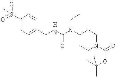 К раствору 4-метилсульфонилфенилуксусной кислоты (16,1 г) в толуоле (200 мл) в атмосфере аргона добавляли дифенилфосфорилазид (16,2 мл) и триэтиламин (10,4 мл). Смесь нагревали при 90°С в течение 3 часов и затем оставляли охлаждаться. Добавляли трет-бутил-1-оксо-4-аминоэтилпиперидин [CAS 264905-39-7] (17,10 г) в толуоле (100 мл), смесь перемешивали в течение 18 часов и затем распределяли между EtOAc/Н2О (500 мл/400 мл), фильтровали и органический слой отделяли и промывали насыщенным раствором NaHCO3 (2×300 мл), солевым раствором (300 мл), сушили над MgSO4, фильтровали и упаривали. Получающееся коричневое масло очищали на диоксиде кремния, используя градиентное элюирование от 0 до 3%-ного МеОН в EtOAc, что дало указанное в заголовке соединение в виде твердого вещества желтого цвета (7,10 г). ЯМР: (DMSO): 1.4 (t, 3Н), 1.40 (s, 9H), 1.52 (m, 4H), 2.73 (m, 2H), 3.15 (m, 5H), 4.02 (m, 3Н), 4.32 (d, 2Н), 6.89 (t, 1H), 7.43 (d, 2H), 7.87 (d, 2H). МС 340 (MH+ – Boc). N-(Пиперидин-4-ил)-N-этил-4-метансульфонилфенилацетамид
