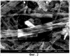 То, что ультратонкие углеродные волокна согласно настоящему изобретению обладают описанными выше структурами, обусловлено, вероятно, тем фактом, что промежуточный продукт (первый промежуточный продукт), приготовленный нагреванием смесевого газа, состоящего из катализатора и углеводорода, при температуре в производящей печи в пределах от 800 до 1300°С, обладает структурой, включающей уложенные один на другой клочкообразные листы из атомов углерода (т.е. некоторые листы находятся еще наполовину в исходном, или незавершенном, состоянии) (см. фиг.1).