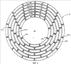 – несколько (обычно больше 3-8, а наиболее типично – 4-6) соосно расположенных колец, снабженных лопастями, в котором по меньшей мере каждое следующее кольцо действует как ротор, а смежные кольца, по отношению к упомянутым кольцам, действуют как статоры или роторы; разница скоростей смежных колец составляет 10-500 м/с, а типично – 50-200 м/с;