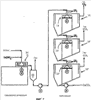 Реактор, изображенный на Фиг.3, также можно использовать для активизации волокнистой суспензии в случае, когда осаждение не должно происходить в этом устройстве. Два или большее число осадительных реакторов обоих типов, представленных на Фиг.1 и 3, может быть установлено последовательно в линии. На Фиг.5 показана группа из трех осадительных реакторов представленного на Фиг.1 типа. Компоненты конструкции обозначены теми же номерами позиций, что и на предыдущих чертежах, если они применимы.