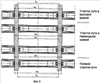На фиг.5 представлена развертка схемы эксплуатируемой в пути рельсошпальной решетки с подрельсовыми основаниями для участков пути в прямой и кривой (детали скрепления условно не показаны).