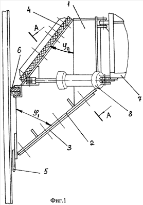 Рама 1 шарнирно крепится к монтажной раме 7 навесного устройства базовой машины с гидроцилиндром управления 8 (фиг.1, 3).
