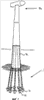 На Фиг.7 изображена ветротурбина 70, установленная на некотором количестве односвайных фундаментов 1, причем армирующие устройства 16 соединены со вторым ярусом башни ветротурбины 70 путем протягивания соединительных средств через фундаментные трубы и через первый уровень башни ветротурбины 70.