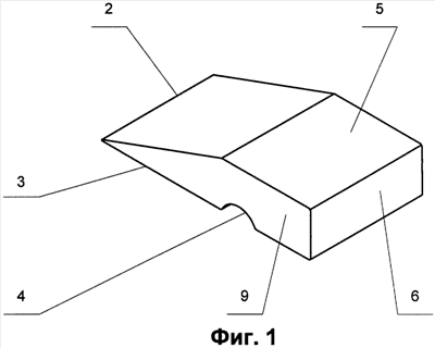 Оператор, удерживая правило за держатель, размещая при этом пальцы рук в продольной канавке 4 и опирая правило на направляющие (на чертежах не показаны), перемещает его по ним вертикально снизу вверх, производя при этом поперечные (возвратно-поступательные) движения, тем самым, осуществляя выравнивание штукатурного материала. Утолщение грани 3 приводит к устойчивости формы правила при нагрузках (при надавливании центром правила и упоре его концами на направляющие) и исключению необходимости введения ребер жесткости внутрь правила.