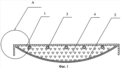 По периметру щита размещены крепежные элементы 5, выполненные, например, в виде уголков и сопрягающих элементов для соединения смежных щитов (на чертеже не показаны).