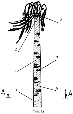 Опорными элементами 1, 2 и 3 могут служить, например, смотровые площадки, площадки обслуживания или технологические бандажи высотных сооружений, расположенные по всей длине (высоте) сооружения (см. фиг.5 и фиг.10).