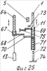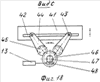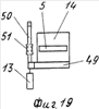 Привод 13 (фиг.3) может быть электрическим (электродвигатель), электромагнитным, пневматическим, гидравлическим, ручным и т.д. На фиг.6 показан держатель 11 экрана 14. К держателю 11 через шарнир прикреплена гайка 39, в зацепление с которой входит винт 40, вращаемый электродвигателем 13. Гайка 39 перемещается по винту 40 и перемещает экран 14. Если в кронштейне 41 (фиг.3, 18), жестко связанным с держателем 11 выполнить паз 42 (фиг.18), в котором могут перемещаться ролики 43, жестко закрепленные на рычагах 44, которые в свою очередь жестко соединены с зубчатыми колесами 45, находящимися в зацеплении с зубчатыми колесами 46, различного направления движения, которые жестко соединены с червячным колесом 47, которое взаимодействует с червяком 48, то при вращении червяка 48, соединенного с электродвигателем 13, кронштейн 41, а с последним и экран 1 (фиг.3) будут двигаться вверх-вниз. На фиг.19 и 20 экран 14 жестко связан основанием 49 с червячной рейкой 50, которая взаимодействует с червяком 51, получающим вращение от привода 13. Экран 14 открывает или закрывает ручку 5, перемещаясь по направляющим. Вместо червяка и червячной рейки можно использовать зубчатое колесо и зубчатую рейку, трос и шкив и т.д.